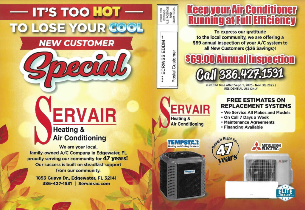 We are your local, family-owned A/C company in Edgewater, FL that has been in business for over 46 years thanks to the support from the local community. Call us for a FREE ESTIMATE – We offer Financing for your new A/C System!*